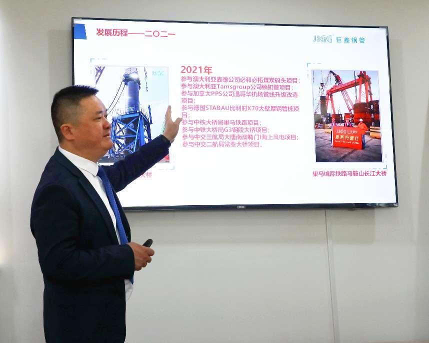 巨鑫鋼管疏浚事業(yè)部、海上風(fēng)電事業(yè)部、橋梁碼頭事業(yè)部、總工程師分別介紹了十五年巨鑫在各領(lǐng)域的發(fā)展和技術(shù)創(chuàng)新取得的成績(jī)。