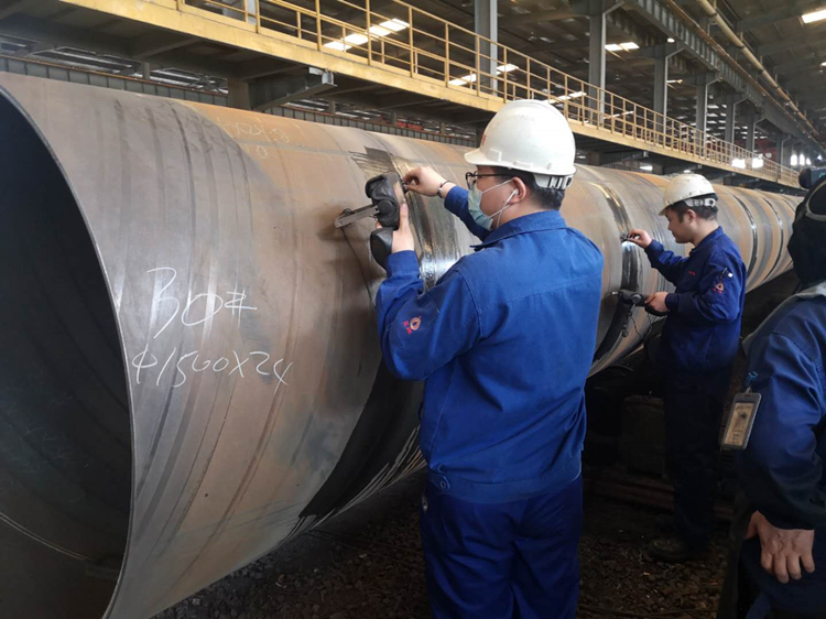質(zhì)檢部員工對產(chǎn)品質(zhì)量堅持嚴抓實管,動真碰硬,生產(chǎn)中不論是誰,只要發(fā)生質(zhì)量問題,一是嚴格考核,二是堅決整改。由于是按照國際標準制作的鋼管,班長梁寧帶領質(zhì)檢員對業(yè)務技術做到虛心學習,精益求精,從不滿足,每一個過程都是一個新的控制,她在學深學透的基礎上,對班組全面的進行指導,不懂的手把手的教他們,認真?zhèn)魇跇I(yè)務技術。教他們?nèi)绾螜z測焊縫,怎樣杜絕質(zhì)量隱患,怎樣提高工作效率。質(zhì)檢班全體員工兢兢業(yè)業(yè),無論天多熱、風多大、有多冷,都堅持在一線,管里管外的一遍遍的檢測,確保了鋼管合格率,保證了鋼管質(zhì)量。