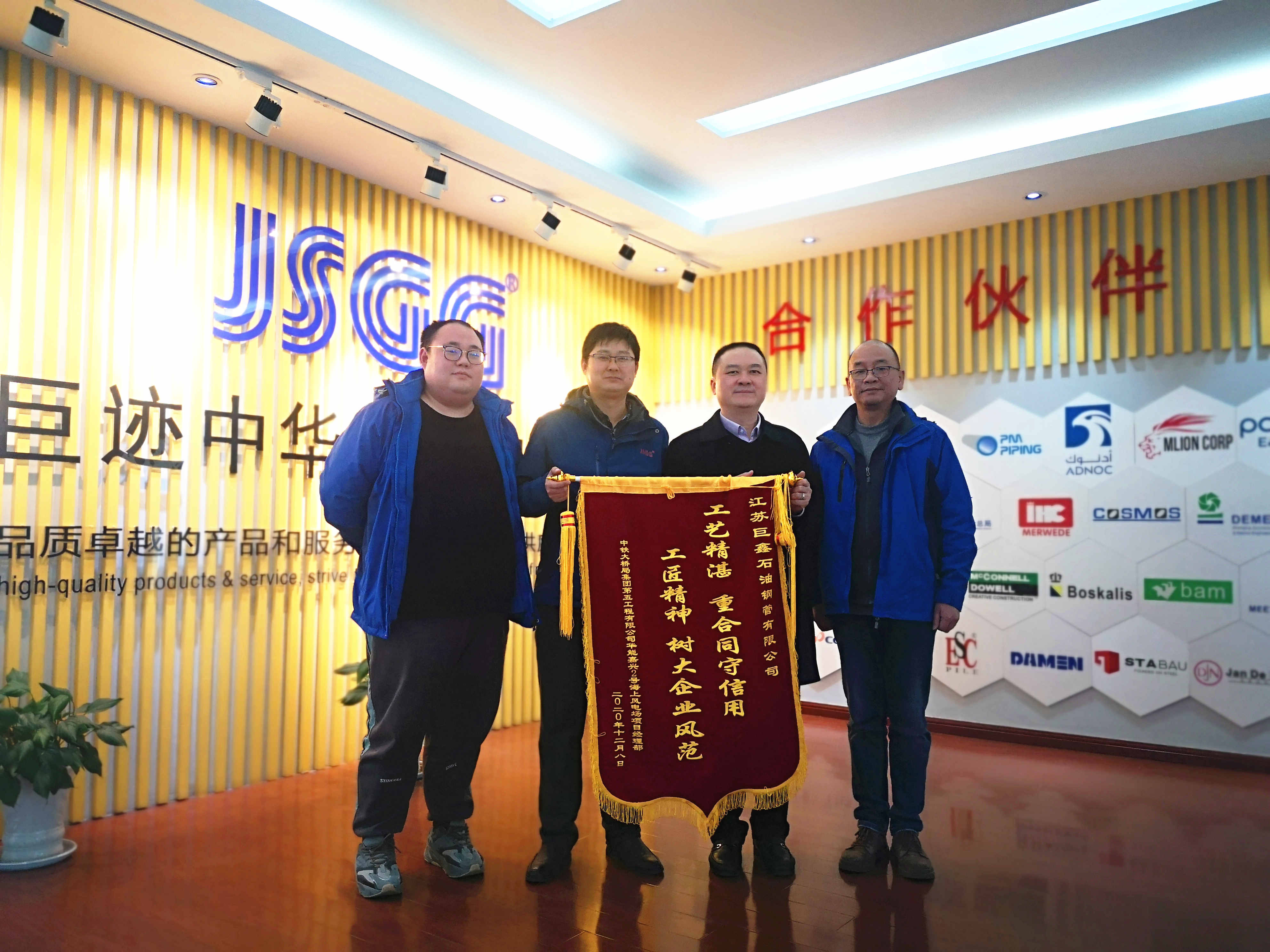 1月28日,中鐵大橋局集團(tuán)第五工程有限公司華能嘉興2號海上風(fēng)電場項目部送來的“工藝精湛 重合同守信用 工匠精神 樹大企業(yè)風(fēng)范”錦旗一副,項目部來送錦旗的同志說以此來表達(dá)巨鑫鋼管長期以來為工程提供的優(yōu)質(zhì)熱情服務(wù)。