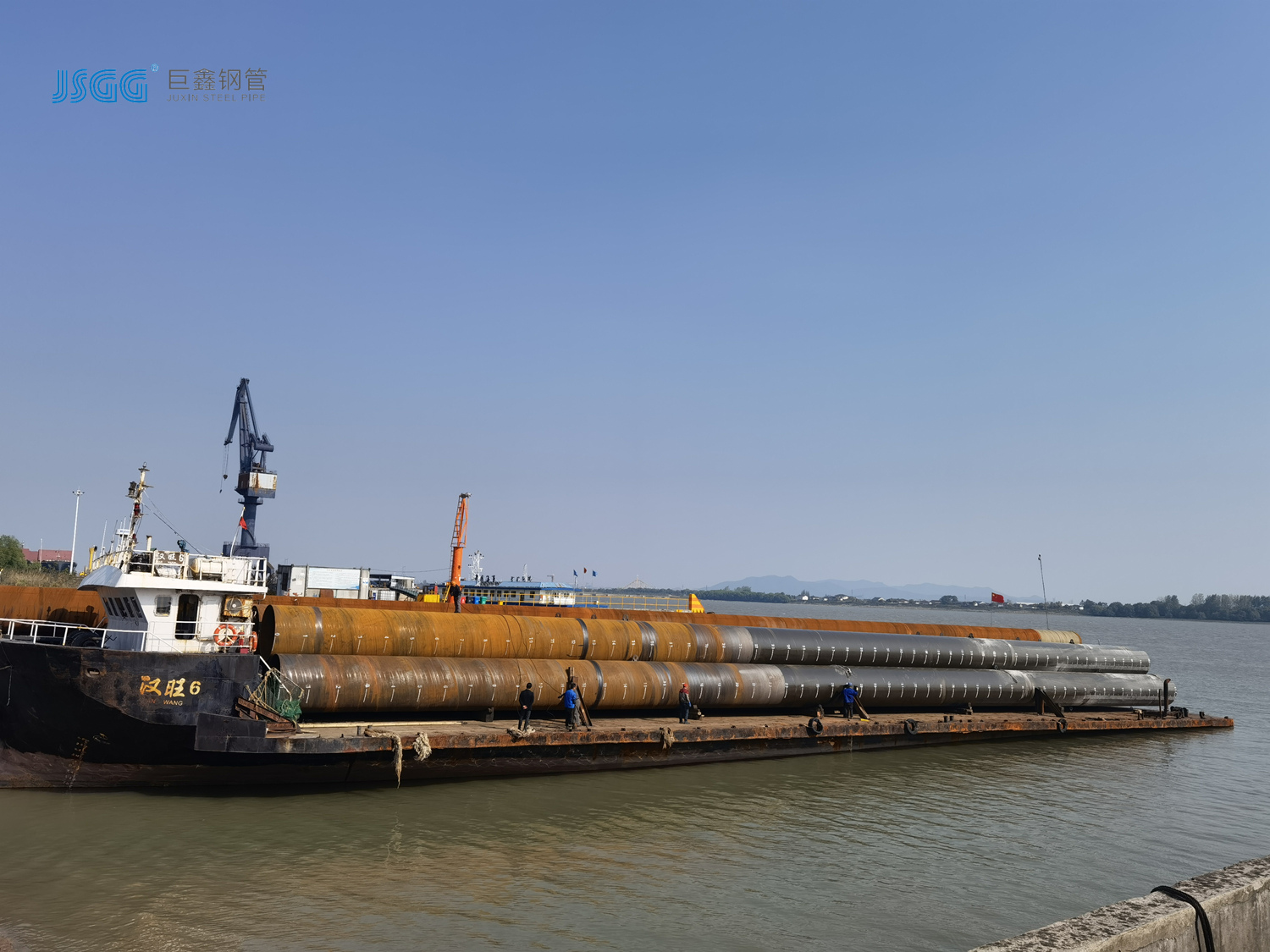 江蘇巨鑫鋼管海工基地發(fā)運(yùn)中交四航局廣東石化碼頭鋼管現(xiàn)場一