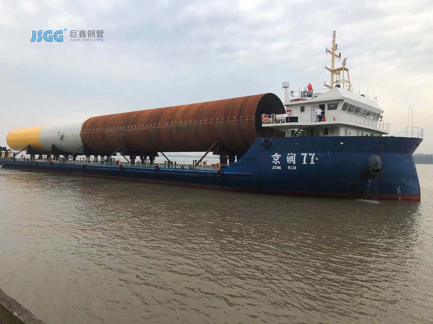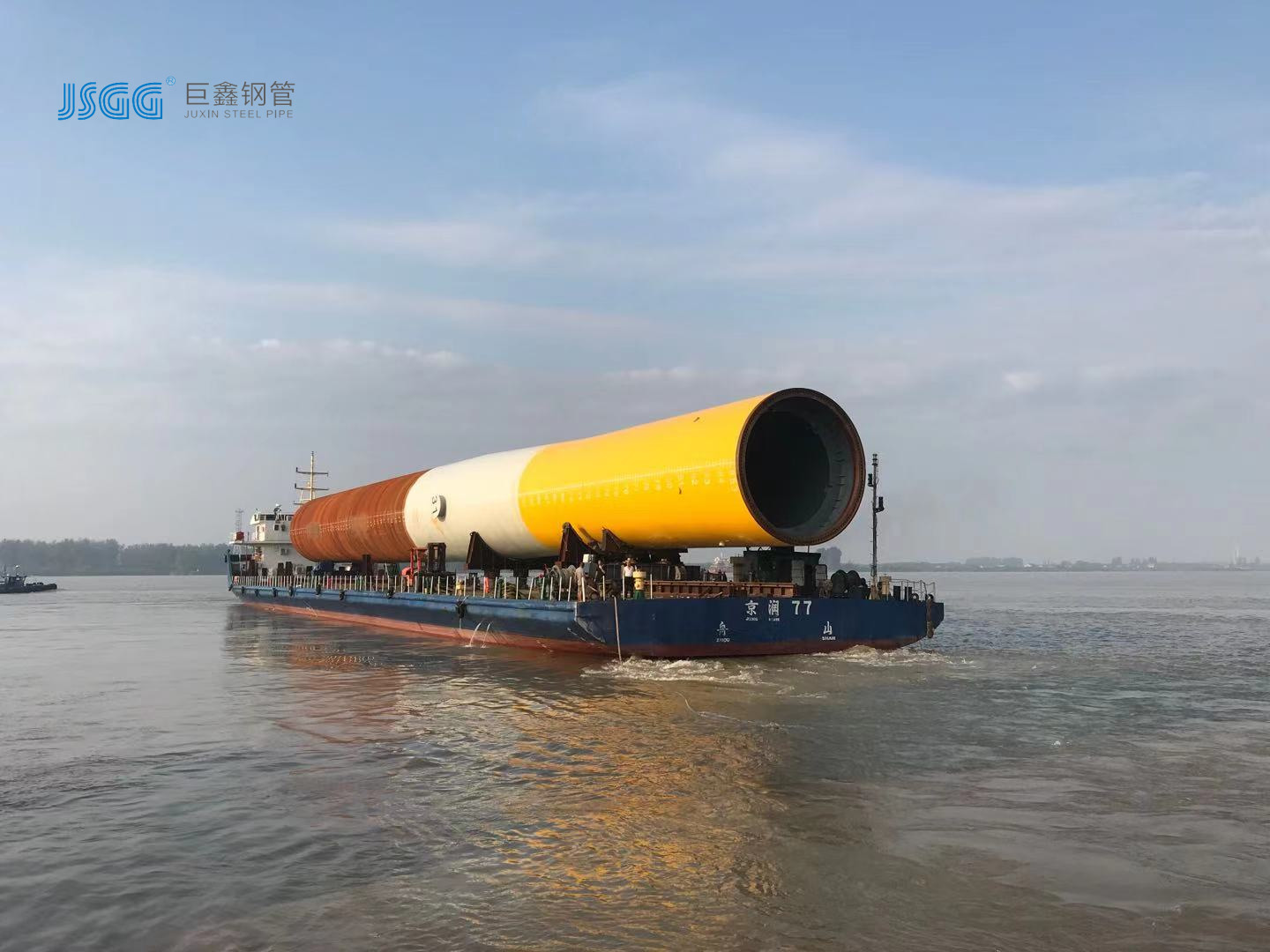 7月11日,在江蘇揚州長江邊巨鑫海工基地碼頭,隨著運輸船京潤77緩慢開出港口,標志著由巨鑫鋼管制造的大唐南澳勒門I海上風電項目首支31#樁順利交付。