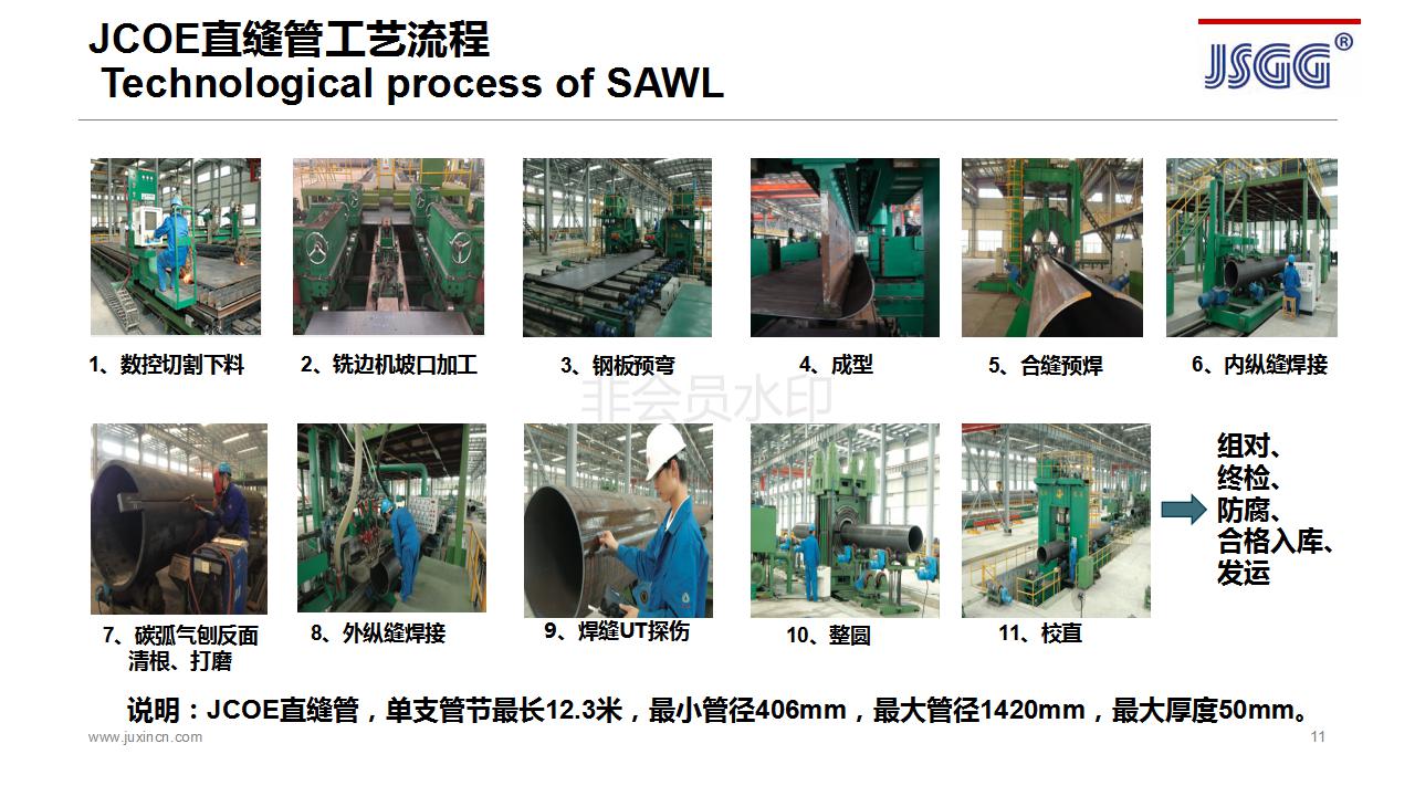 江蘇巨鑫石油鋼管有限公司坐落于風(fēng)景秀麗的古城揚(yáng)州,現(xiàn)有1條國(guó)內(nèi)領(lǐng)先水平JCOE直縫雙面埋弧焊管生產(chǎn)線,5套三輥鋼板卷制成型直縫雙面埋弧焊管生產(chǎn)設(shè)備,4條螺旋縫雙面埋弧焊管生產(chǎn)線,年設(shè)計(jì)生產(chǎn)能力達(dá)40萬(wàn)噸??膳抗?yīng)φ219~φ7000mm,壁厚為4mm~150mm,單位長(zhǎng)度1.5m-120m的焊管,并可配套供應(yīng)各種鋼管管件及各種形式的防腐鋼管,產(chǎn)品廣泛應(yīng)用于碼頭及橋梁樁基、航道疏浚、海上風(fēng)電、高鐵和地鐵深基礎(chǔ)、城市管網(wǎng)、鋼結(jié)構(gòu)、特高壓輸電網(wǎng)等領(lǐng)域。