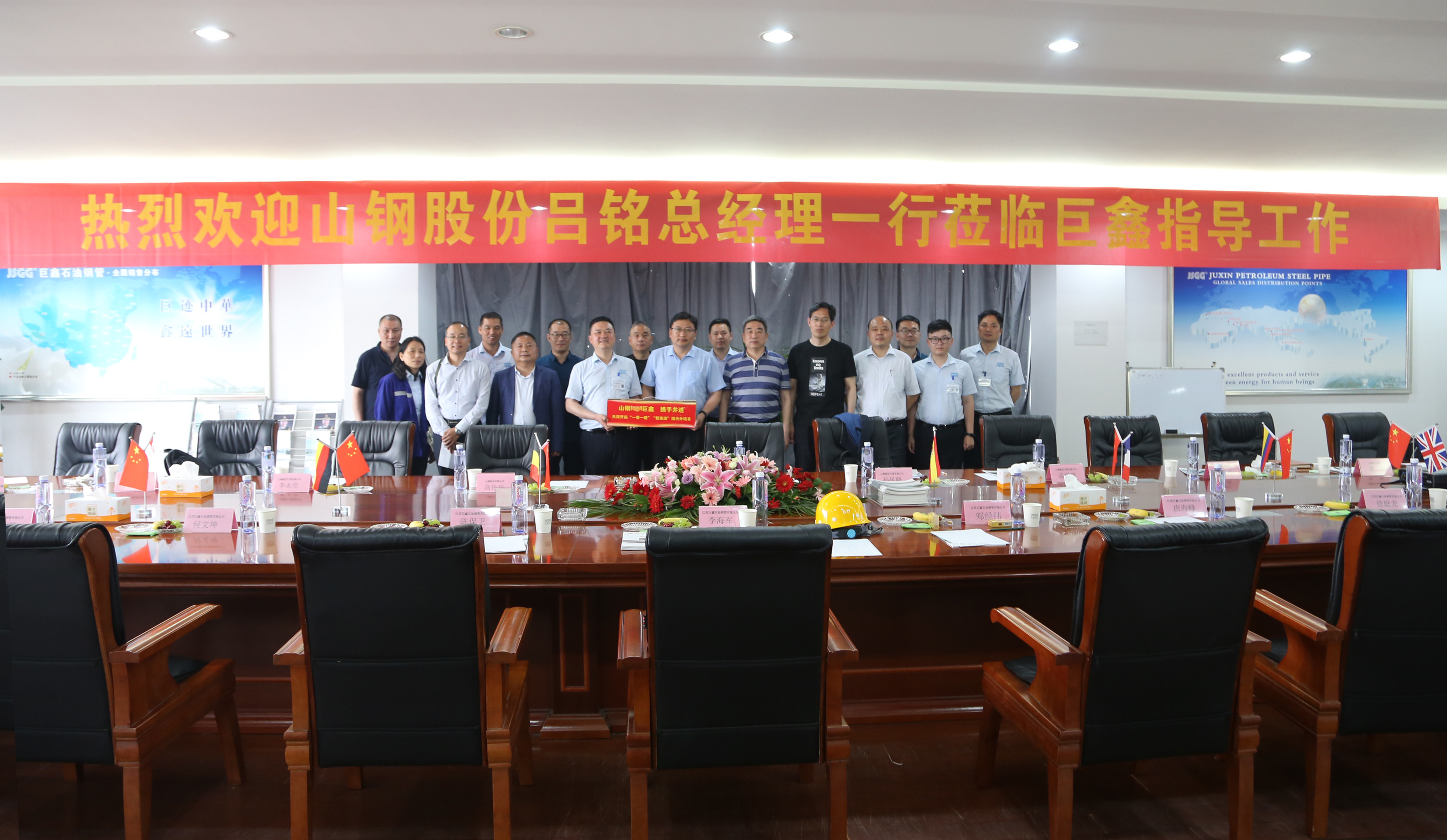 2020年5月20日,山鋼股份總經(jīng)理、山鋼集團(tuán)日照公司黨委書記、董事長(zhǎng)呂銘率營(yíng)銷總公司副總經(jīng)理高傳華、科技質(zhì)量中心主任孫風(fēng)曉、熱軋廠經(jīng)理孟祥瑞、中厚板廠經(jīng)理李永亮、營(yíng)銷總公司副部長(zhǎng)路清祥、 營(yíng)銷總公司副部長(zhǎng)郭青、日照公司科技質(zhì)量中心中厚板所副所長(zhǎng)成小龍等一行來(lái)巨鑫考察指導(dǎo),受到巨鑫李海軍總經(jīng)理熱情接待。