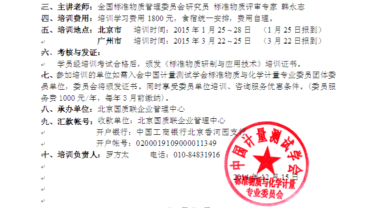 標(biāo)準(zhǔn)物質(zhì)研制與應(yīng)用技術(shù)培訓(xùn)班報(bào)名表