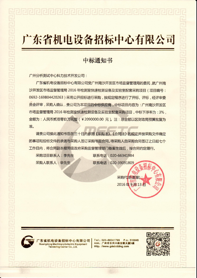 恭喜中廣測(cè)科力成為廣州南沙開發(fā)區(qū)市場(chǎng)監(jiān)督管理局2016年檢測(cè)室快速檢測(cè)設(shè)備及實(shí)驗(yàn)室配套采購項(xiàng)目合格供應(yīng)商。中廣測(cè)科力從2002年開始代理銷售國家標(biāo)準(zhǔn)物質(zhì),是國內(nèi)最早從事標(biāo)準(zhǔn)物質(zhì)銷售和技術(shù)服務(wù)的企業(yè)之一,也是國內(nèi)全面綜合的標(biāo)準(zhǔn)物質(zhì)和標(biāo)準(zhǔn)樣品的專業(yè)供應(yīng)商之一。專業(yè)、嚴(yán)謹(jǐn)、真誠、實(shí)干是我們的服務(wù)宗旨,歡迎咨詢,請(qǐng)致電:020-87684186/010-64129805。
