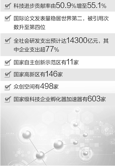 萬鋼說,經(jīng)過五年積累,我國科技創(chuàng)新加速突破,科技進(jìn)步貢獻(xiàn)率由50.9%增加到55.1%。