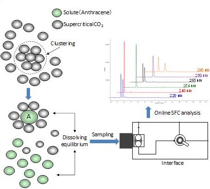 超臨界CO2具有廉價易得、無毒害、溶解能力可調(diào)變等優(yōu)點(diǎn),被認(rèn)為是一種能夠替代有機(jī)溶劑的綠色溶劑,通常應(yīng)用于天然產(chǎn)物提取、合成反應(yīng)、材料制備、色譜分析等領(lǐng)域。超臨界色譜兼有氣相色譜和液相色譜的特點(diǎn),既能夠克服氣相色譜對物質(zhì)沸點(diǎn)、揮發(fā)性的要求,相比液相色譜又具有更短的出峰保留時間、更好的分辨率及對稱性。超臨界色譜通常使用CO2作為體系流動相,并配以甲醇、乙腈等溶劑作為夾帶劑,適于聯(lián)用在線分析超臨界體系中目標(biāo)物的組成變化,減小分析誤差,跟蹤起始變化歷程。