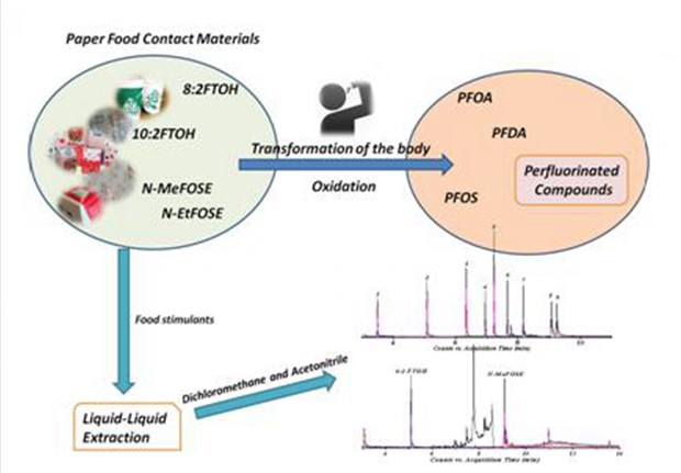 全氟化合物(PFCs)是一類人工合成的化合物,因具有優(yōu)良的高表面活性和疏水疏油性能,被大量應(yīng)用于紡織品或紙制食品接觸材料等諸多與生活相關(guān)的領(lǐng)域中。隨著研究的日益深入,人們發(fā)現(xiàn)全氟類化合物中常見的全氟酸類化合物能在生物體內(nèi)富集,且部分全氟酸類化合物具有生殖毒性,危害人類健康。