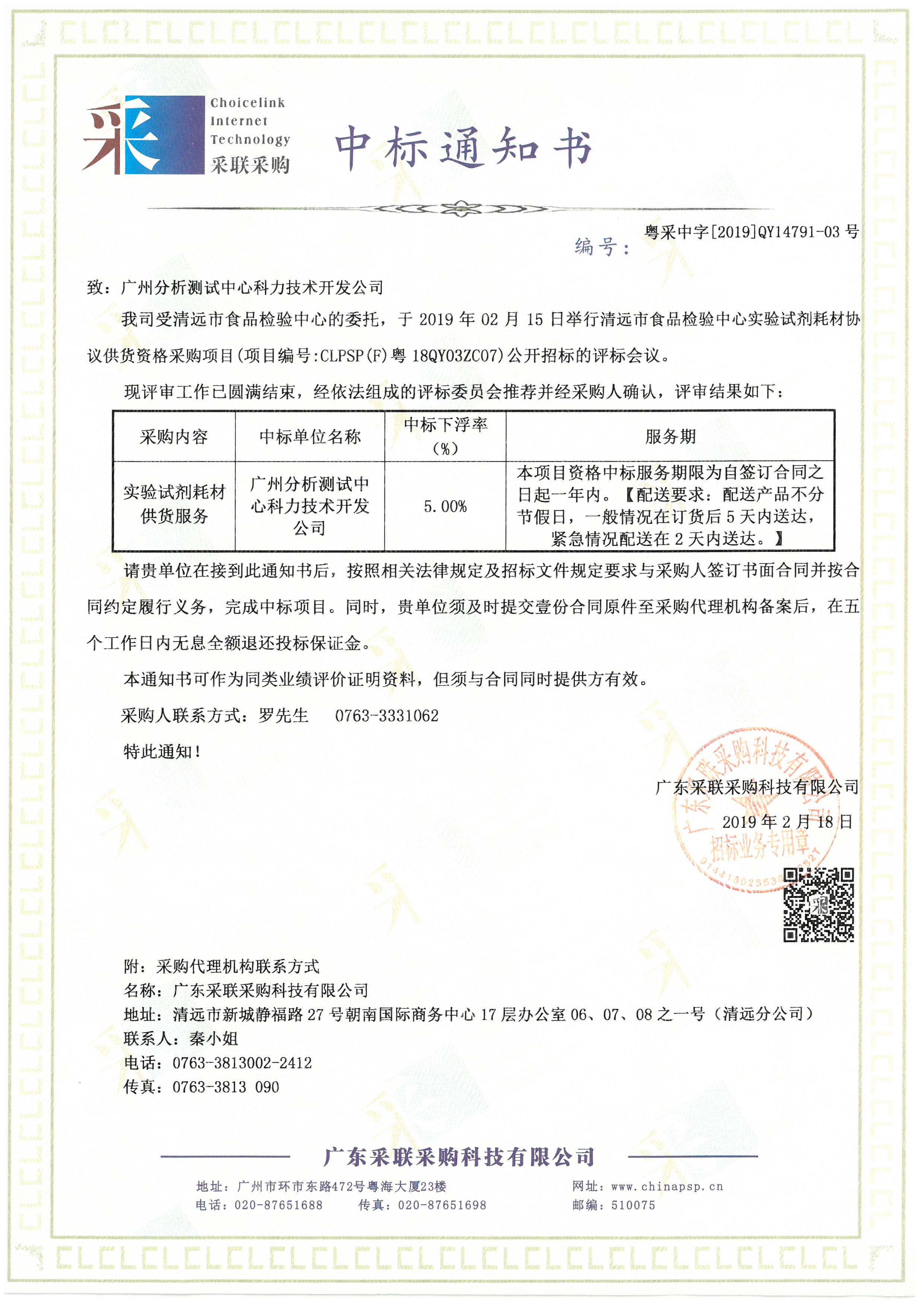 恭喜中廣測(cè)科力成為清遠(yuǎn)市食品檢驗(yàn)中心實(shí)驗(yàn)試劑耗材協(xié)議供貨資格采購(gòu)項(xiàng)目合格供應(yīng)商。中廣測(cè)科力從2002年開始代理銷售國(guó)家標(biāo)準(zhǔn)物質(zhì),是國(guó)內(nèi)最早從事標(biāo)準(zhǔn)物質(zhì)銷售和技術(shù)服務(wù)的企業(yè)之一,也是國(guó)內(nèi)全面綜合的標(biāo)準(zhǔn)物質(zhì)和標(biāo)準(zhǔn)樣品的專業(yè)供應(yīng)商之一。