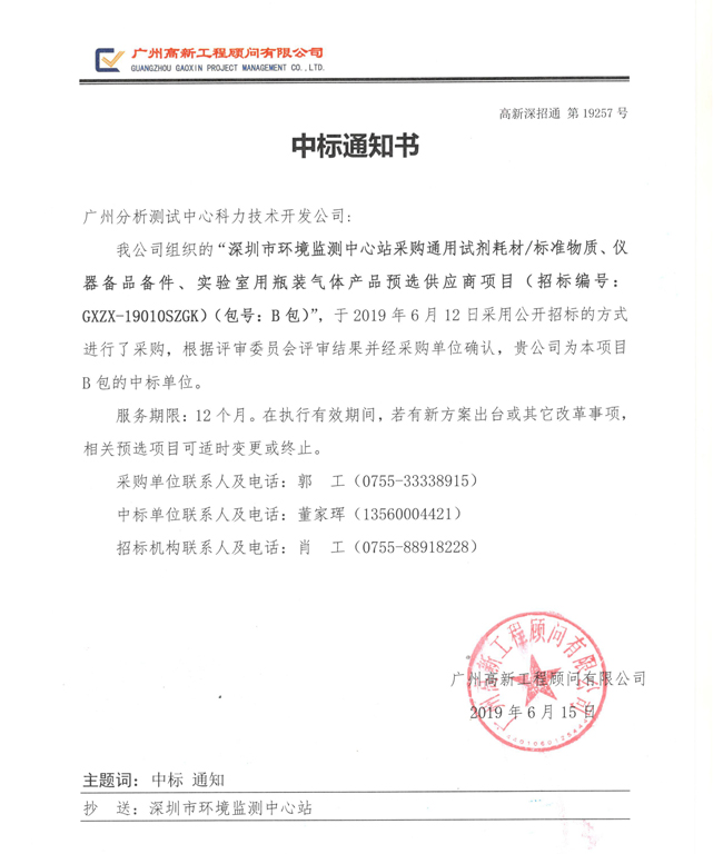 恭喜中廣測(cè)科力成為深圳市環(huán)境監(jiān)測(cè)中心站采購(gòu)試劑耗材/標(biāo)準(zhǔn)物質(zhì)項(xiàng)目A包、B包預(yù)選供應(yīng)商。中廣測(cè)科力從2002年開(kāi)始代理銷售國(guó)家標(biāo)準(zhǔn)物質(zhì),是國(guó)內(nèi)最早從事標(biāo)準(zhǔn)物質(zhì)銷售和技術(shù)服務(wù)的企業(yè)之一,也是國(guó)內(nèi)全面綜合的標(biāo)準(zhǔn)物質(zhì)和標(biāo)準(zhǔn)樣品的專業(yè)供應(yīng)商之一。