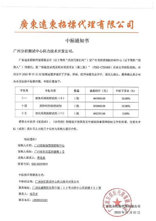 恭喜中廣測(cè)科力成為廣州市疾病預(yù)防控制中心實(shí)驗(yàn)室試劑及耗材采購(gòu)項(xiàng)目(第二批)合格供應(yīng)商,中廣測(cè)科力從2002年開(kāi)始代理銷(xiāo)售國(guó)家標(biāo)準(zhǔn)物質(zhì),是國(guó)內(nèi)最早從事標(biāo)準(zhǔn)物質(zhì)銷(xiāo)售和技術(shù)服務(wù)的企業(yè)之一,也是國(guó)內(nèi)全面綜合的標(biāo)準(zhǔn)物質(zhì)和標(biāo)準(zhǔn)樣品的專(zhuān)業(yè)供應(yīng)商之一。