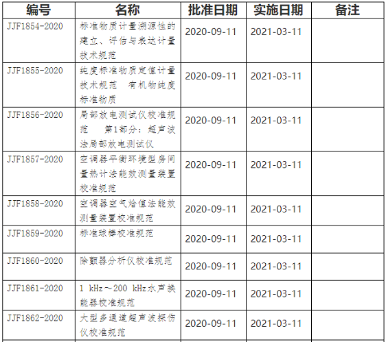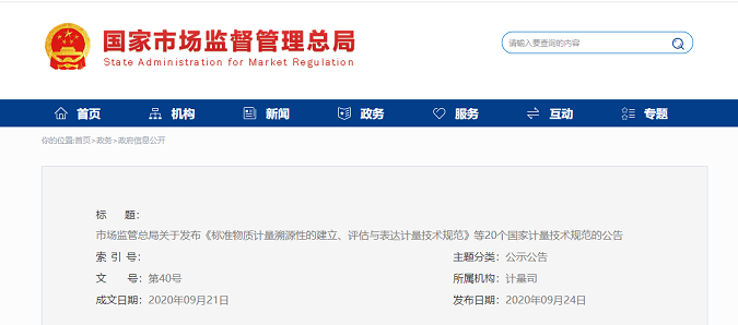 9月24日,國家市場監(jiān)管總局發(fā)布公告,根據(jù)《中華人民共和國計量法》有關規(guī)定,現(xiàn)批準《標準物質計量溯源性的建立、評估與表達計量技術規(guī)范》等20個國家計量技術規(guī)范發(fā)布實施。