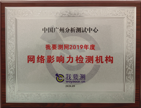 2020年9月16日至17日,第十四屆中國科學(xué)儀器發(fā)展年會在天津召開。同期舉辦“儀器及檢測風(fēng)云榜頒獎盛典”,中廣測榮獲“我要測網(wǎng)2019年度網(wǎng)絡(luò)影響力檢測機(jī)構(gòu)”稱號。