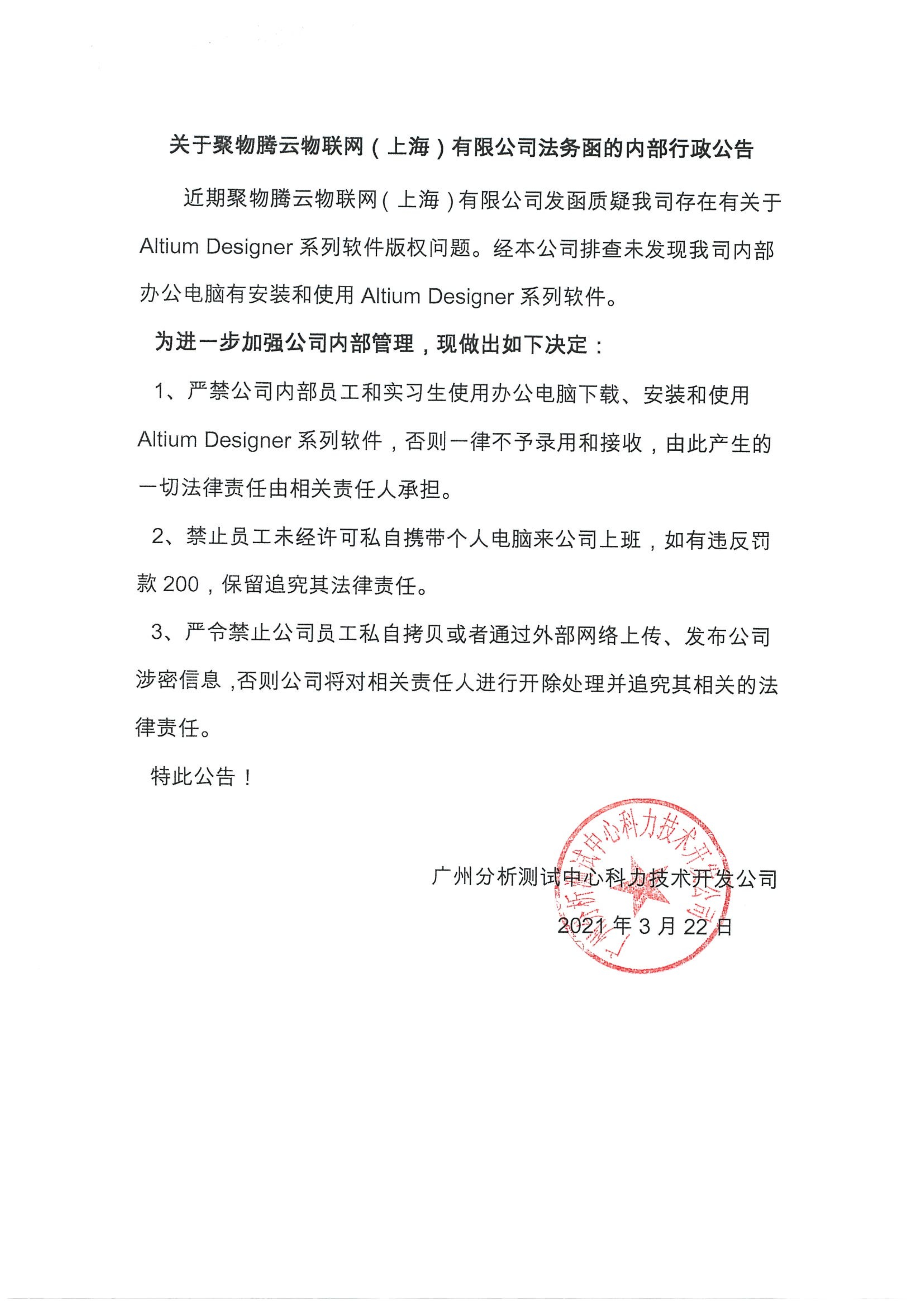 關(guān)于聚物騰云物聯(lián)網(wǎng)(上海)有限公司法務(wù)函的內(nèi)部行政公告