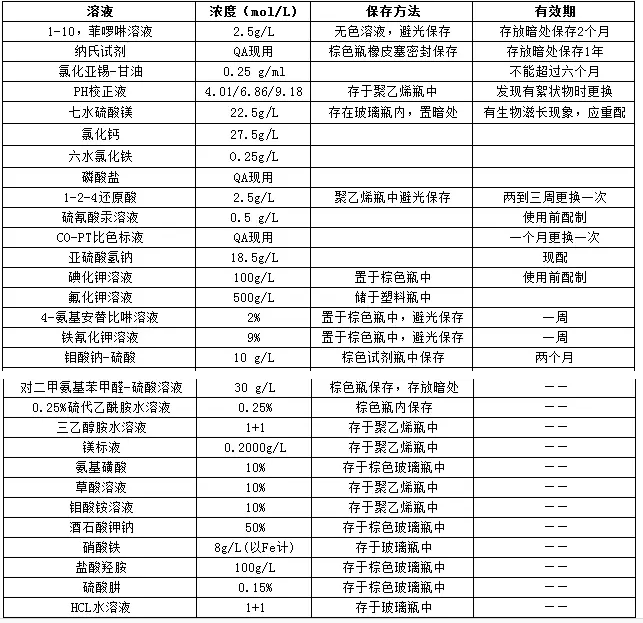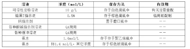 中控分析用試劑溶液保存方法及有效期