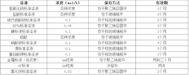 常用標準溶液保存方法及有效期