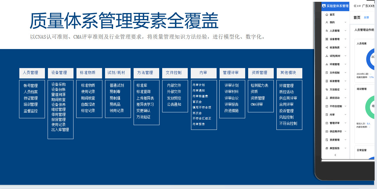 雙合實(shí)驗(yàn)室質(zhì)量體系管理系統(tǒng)由資深評(píng)審專家團(tuán)指導(dǎo),以CNAS認(rèn)可準(zhǔn)則和 CMA評(píng)審準(zhǔn)則為基本依據(jù),聚焦質(zhì)量管理與生產(chǎn)脫節(jié)、任務(wù)布置有去無(wú)回、資料難歸檔易丟失等實(shí)驗(yàn)室質(zhì)量管理的8大痛點(diǎn),為實(shí)驗(yàn)室一線人員減負(fù),打造實(shí)驗(yàn)室體系管理要素全覆蓋的共享技術(shù)質(zhì)量負(fù)責(zé)人,提升質(zhì)量體系管理水平和運(yùn)行效率,助力實(shí)驗(yàn)室行穩(wěn)“質(zhì)”遠(yuǎn)。
